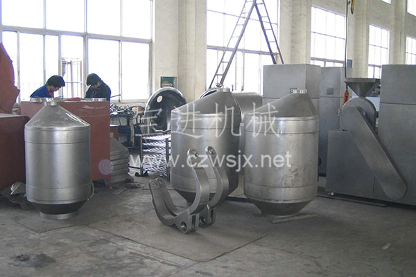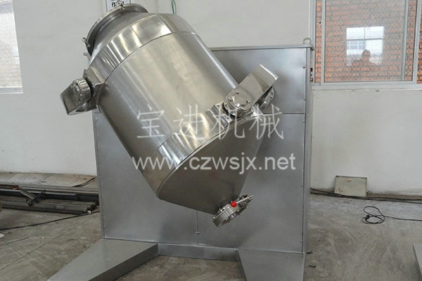 裝料的筒體在主動(dòng)軸的帶動(dòng)下,作周而復(fù)始的平移、轉(zhuǎn)動(dòng)和翻滾等復(fù)合運(yùn)動(dòng),促使物料沿著筒體作三向復(fù)臺(tái)運(yùn)動(dòng),從而實(shí)現(xiàn)多種物料的互相流動(dòng)、擴(kuò)散、積聚、摻雜.以達(dá)到均勻混合的目的。